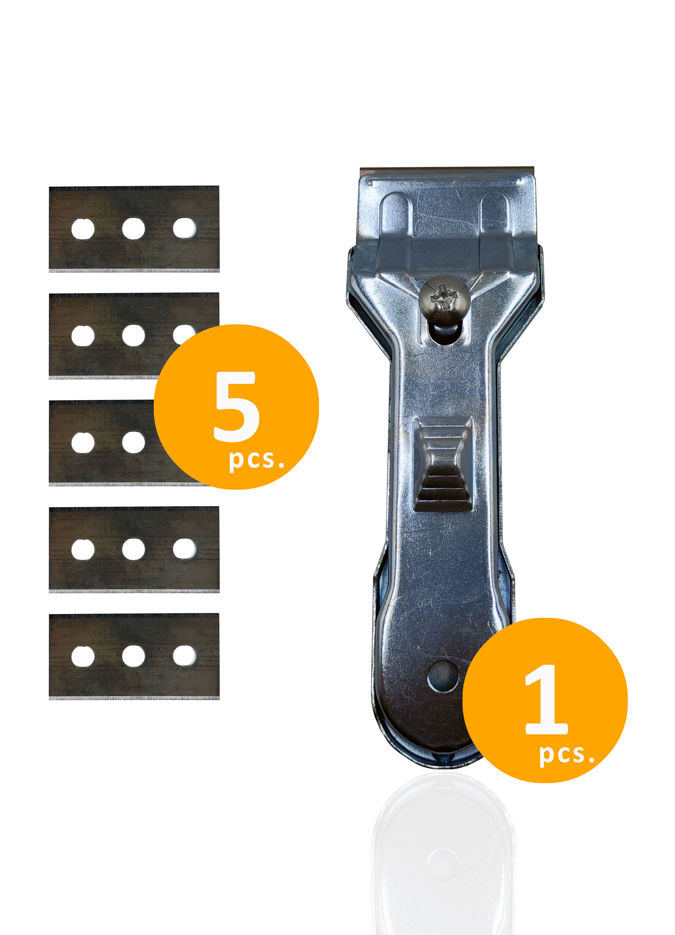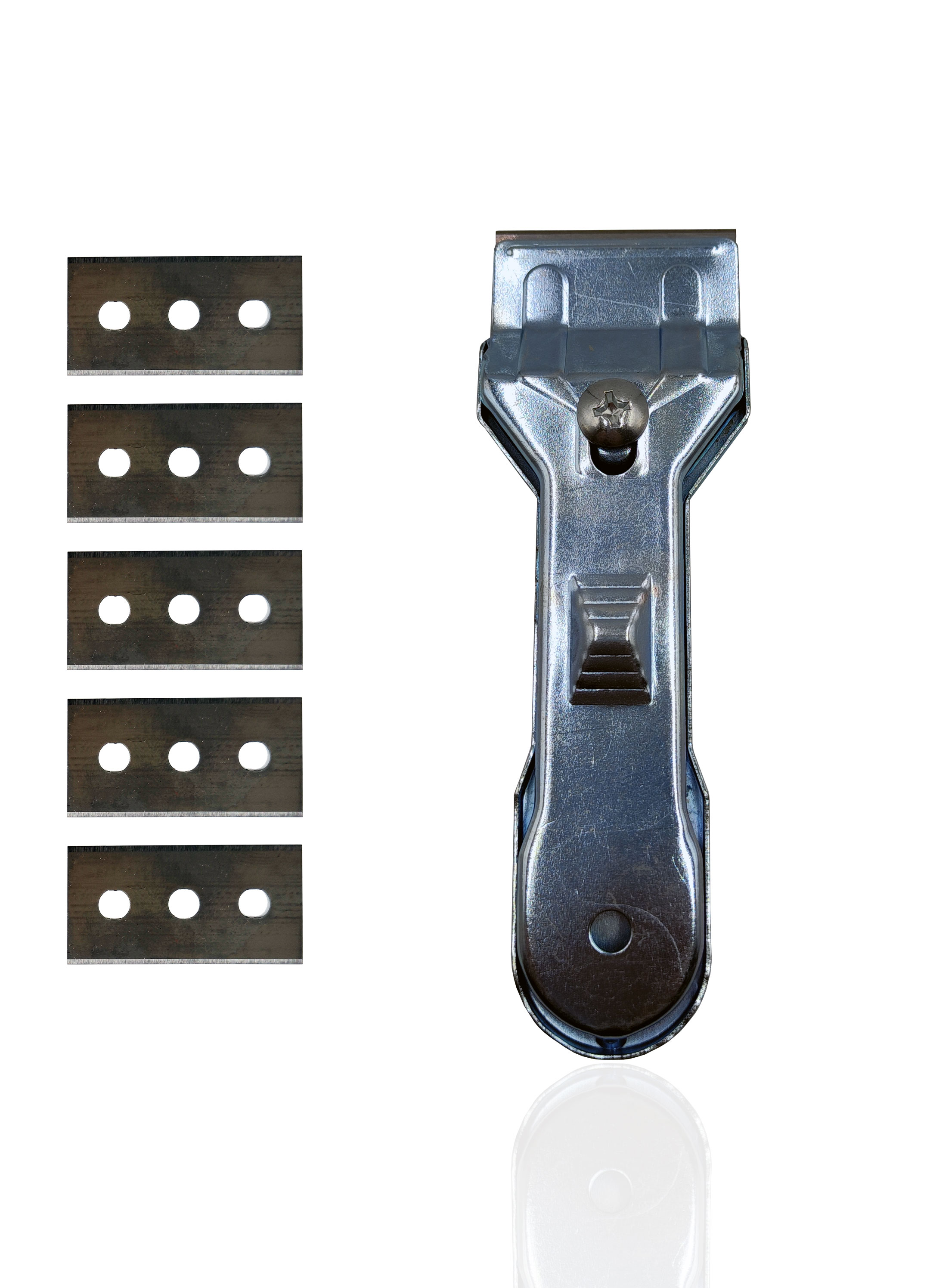 Im Lieferumfang des Kratzschabers befinden sich 15 weitere Edelstahlklingen, die eine langfristige Anwendung sicherstellen.
